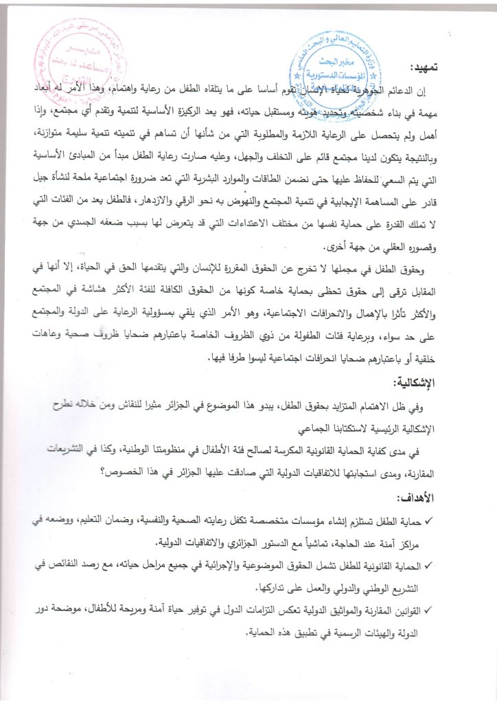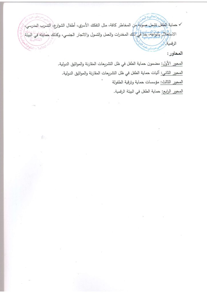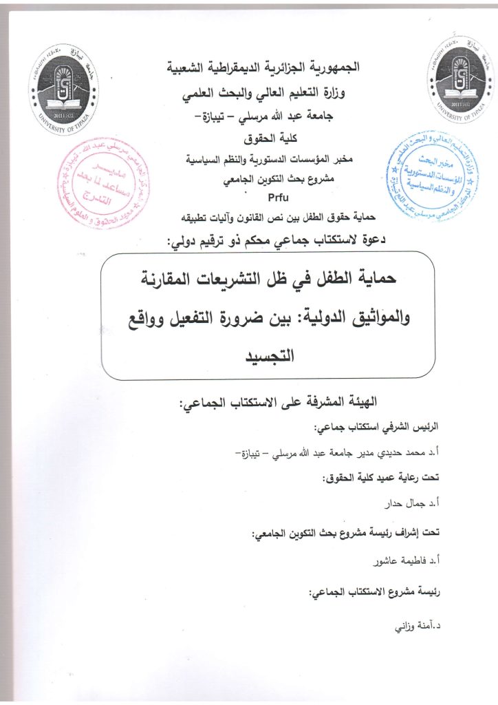 دعوى لاستكتاب جماعي محكم ذو ترقيم دولي بعنوان : حماية الطفل في ظل  التشريعات المقارنة و المواثيق الدولية : بين ضرورة التفعيل و واقع التجسيد